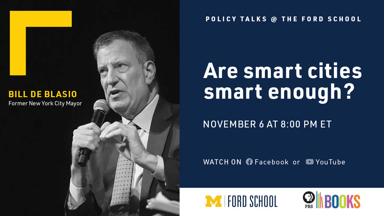 oin the Gerald R. Ford School of Public Policy and the Science, Technology, and Public Policy (STPP) Program for a Policy Talks @ the Ford School conversation with former New York City mayor, Bill de Blasio.