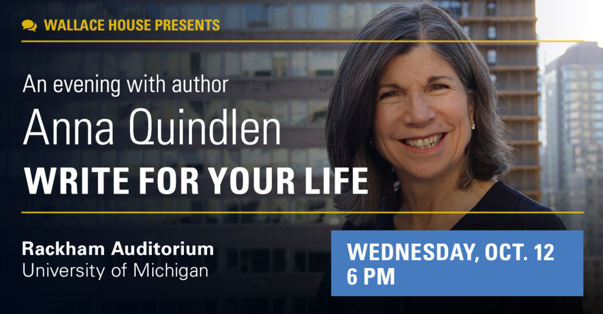 On Wednesday, Oct. 12, she joins Anne Curzan, U-M dean and English professor, for an engaging discussion about Quindlen’s latest book, “Write for Your Life,” and how anyone can write and why everyone should.
