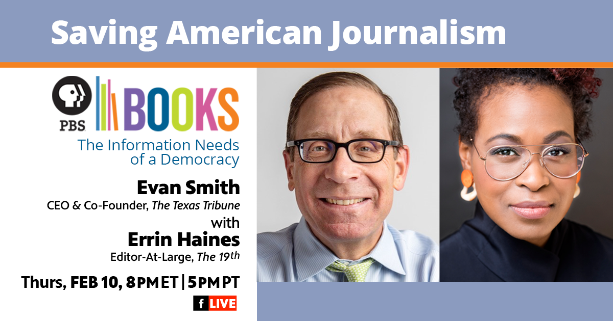 A conversation about serving the news and information needs of our nation Thursday, Feb 10 at 8pm ET | 5pm PT, PBS Books is pleased to host The New Era of Modern Journalism: a conversation with Evan Smith, who is the CEO and Co-Founder of The Texas Tribune, a pioneering nonprofit, nonpartisan media outlet, in conversation with journalist Errin Haines, Editor-At-Large of The 19th*. Having recently announced his departure from The Texas Tribune, Evan Smith will discuss his background and career, the current state of journalism and its future. The conversation will touch on the importance journalism to our democratic system, [...]