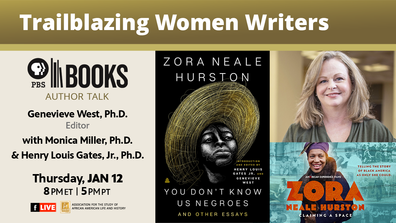 PBS Books, in collaboration with the Association for the Study of African American Life and History (ASALH), is pleased to host a program about Zora Neale Hurston’s latest book You Don’t Know Us Negroes & Other Essays with co-editor Genevieve West, Ph.D. in conversation with Monica Miller, Ph.D., in connection with AMERICAN EXPERIENCE’s ZORA NEALE HURSTON: CLAIMING A SPACE.