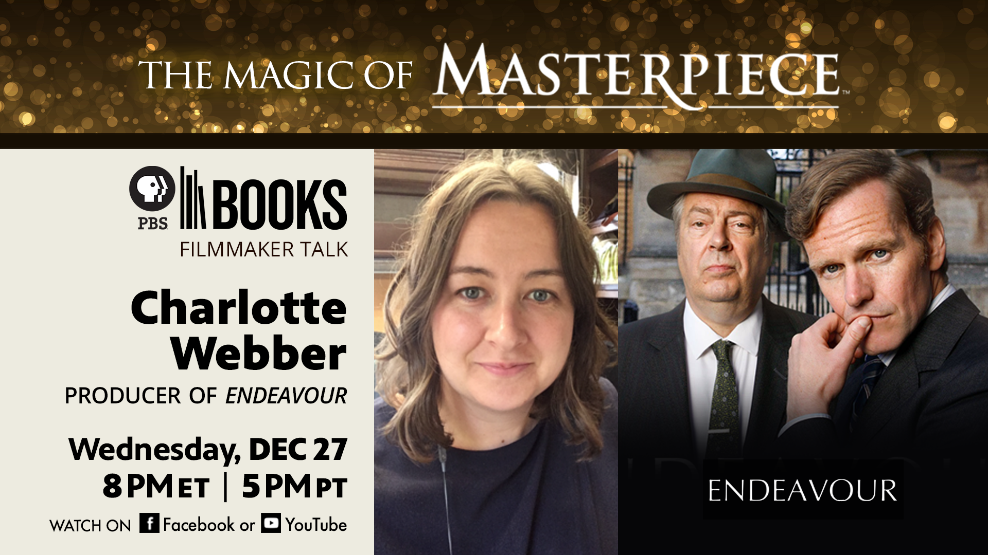 The Magic of Masterpiece Program Description: PBS Books was thrilled to host a conversation about MASTERPIECE’s final season of Endeavour with producer Charlotte Webber. Hear insights into the making of the ninth season and about what you can expect to see as the series comes to an end. About the Show: With characters from Colin Dexter’s books, Shaun Evans as Endeavour Morse and Roger Allam as Fred Thursday return for the ninth and final season of the critically acclaimed detective drama Endeavour. Set in the early 70s in Oxford, the final season finds Endeavour Morse and Fred Thursday [...]