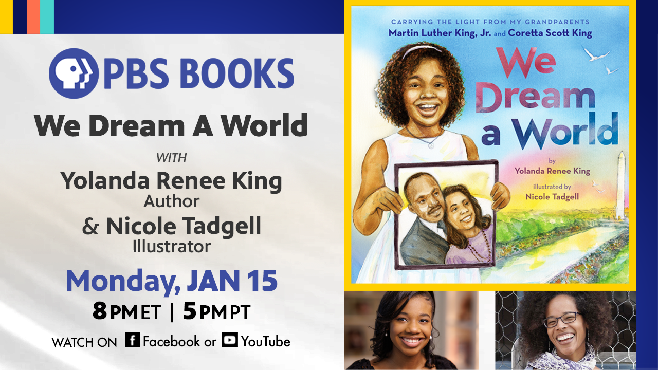 PBS Books invites you to hear from the next generation that is building on the legacy of Dr. Martain Luther King Jr and Coretta Scott King. Heather-Marie Montilla sits down with Author Yolanda Renee King and Illustrator Nicole Tadgell to discuss Miss King’s debut book Carrying the Light from My Grandparents Martin Luther King, Jr. and Coretta Scott King: We Dream a World.