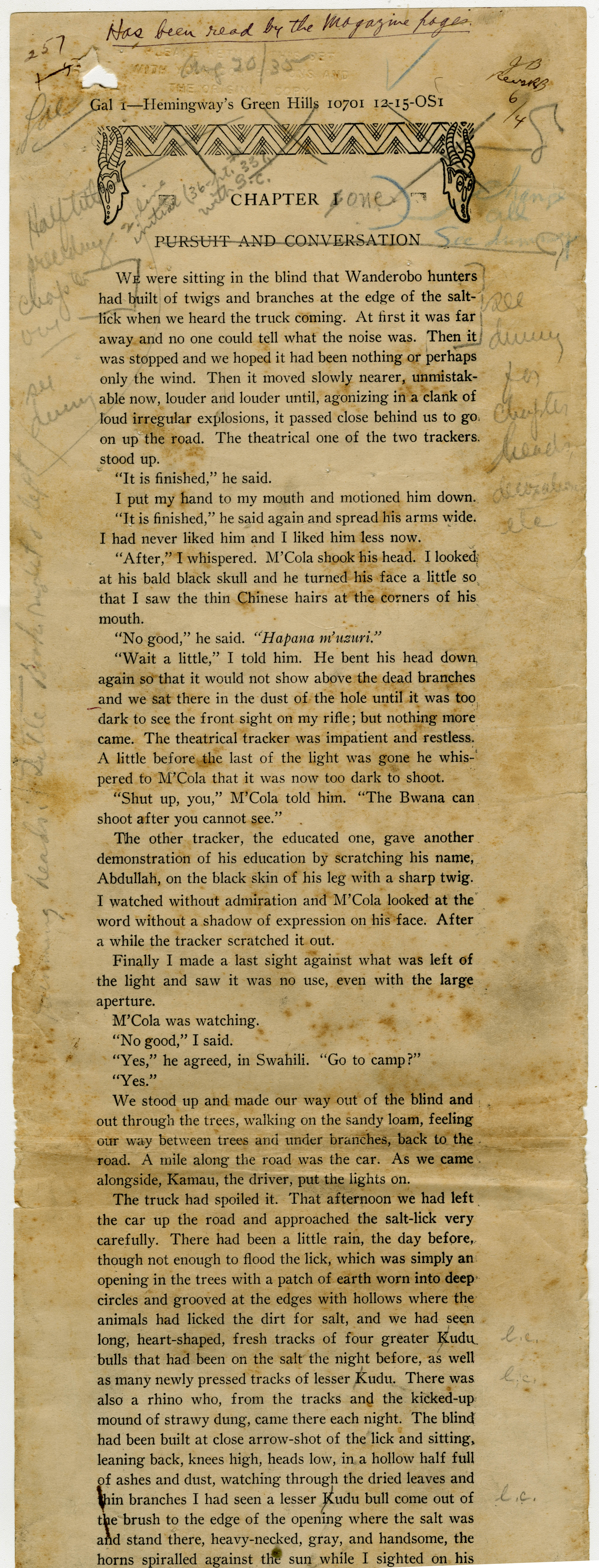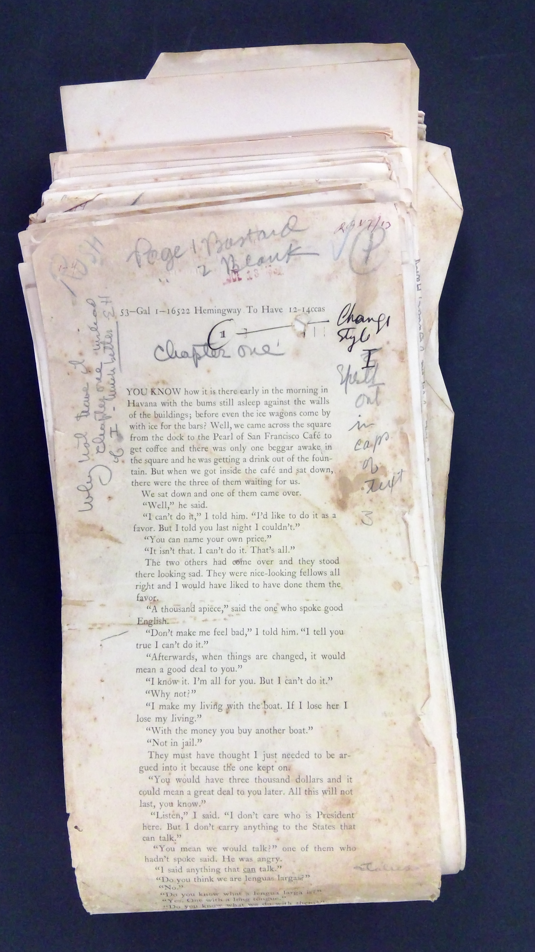 Hemingway was awarded the 1954 Nobel Prize in Literature on the strength of "The Old Man and the Sea," being cited "for his mastery of the art of narrative, most recently demonstrated in 'The Old Man and the Sea,' and for the influence that he has exerted on contemporary style". Although it is believed that as many as 5000 galley proofs were issued, few copies of this fragile item have survived and complete sets are scarce on the market.